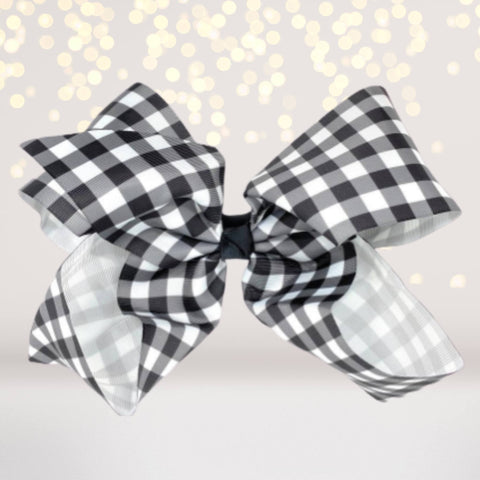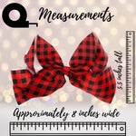 Large Red and Black Plaid Lumberjack Hair Bow, Black and White Plaid Buffalo Plaid Hair Bow