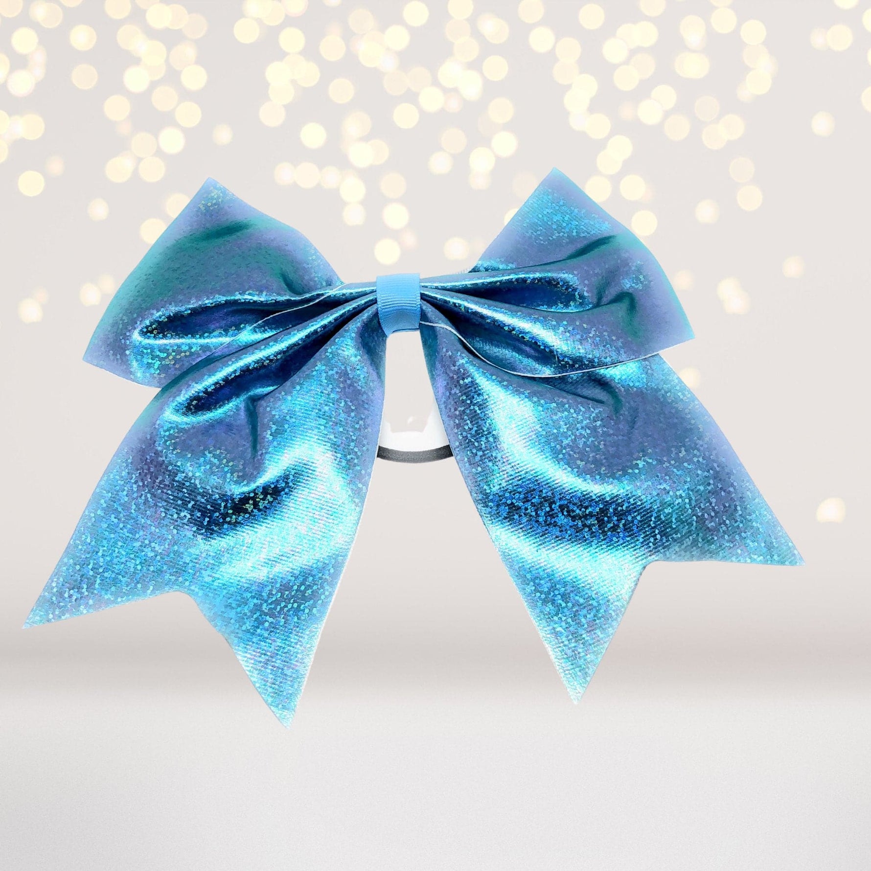 Shout your cheer loud and proud with the dazzling Girls 7-inch Metallic Shiny Holographic Cheer Bow Ponytail Holder. Not only will you be competition-ready, but you'll also sparkle with every stunt and tumble!