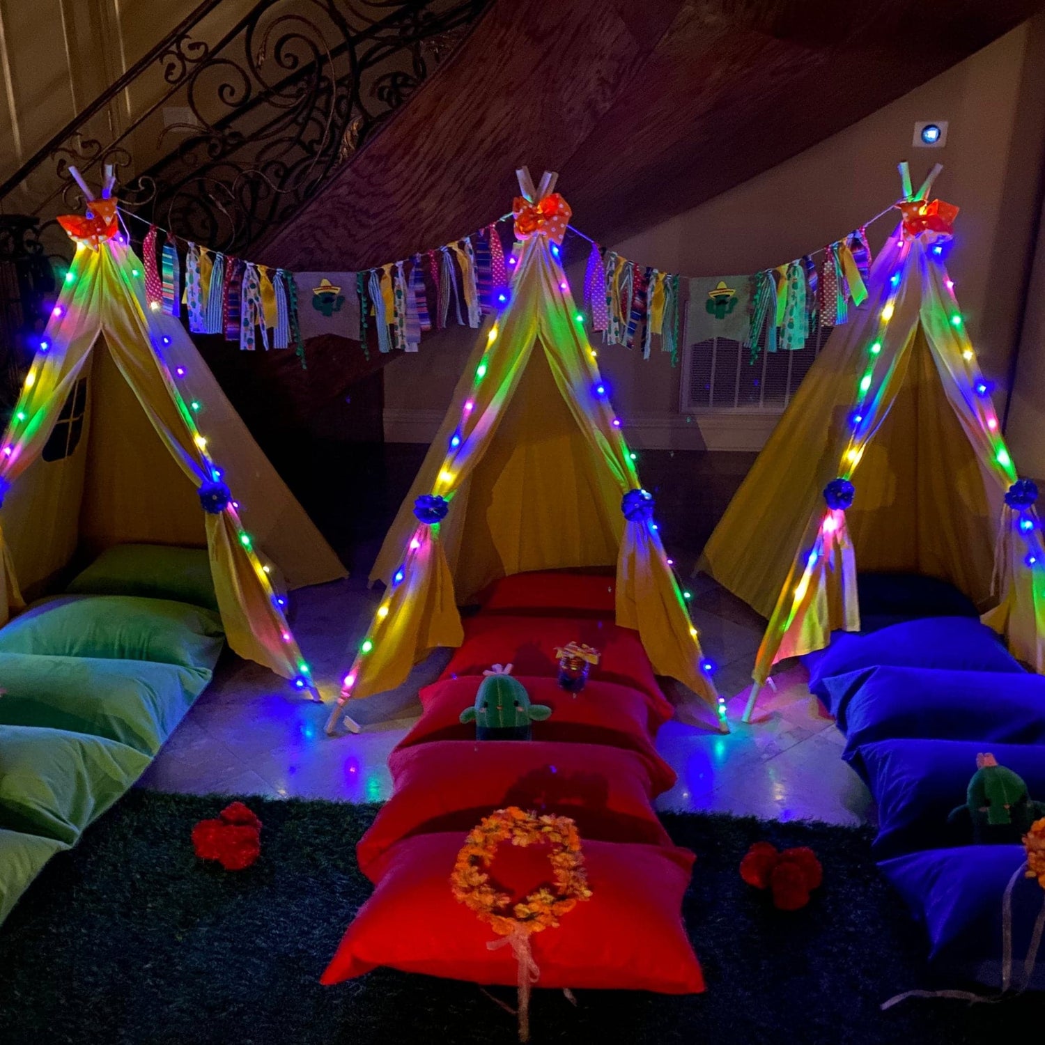 - 6 strands of twinkling lights to decorate each sleepover teepee or hang between the teepees.