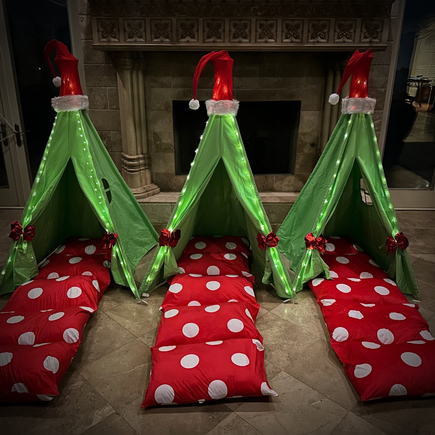 - 3 glamping slumber party tents perfect for setting up Christmas Eve night as a special treat for your kids