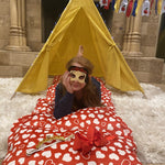 - Our bright yellow kids teepee includes a coordinating carry bag to allow your girl to pack up the play tent for travel or for organized storage.