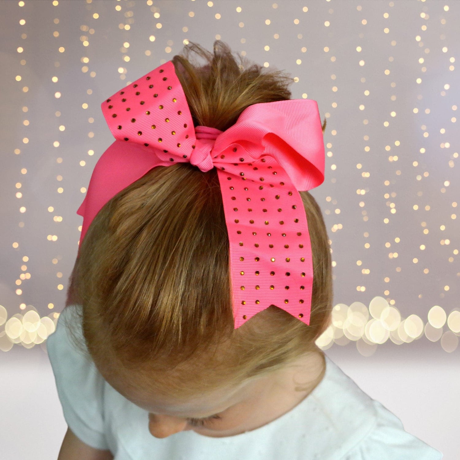 Add some sparkle to your child's hairstyle with our Girls Rhinestone Cheer Bow Ponytail today!