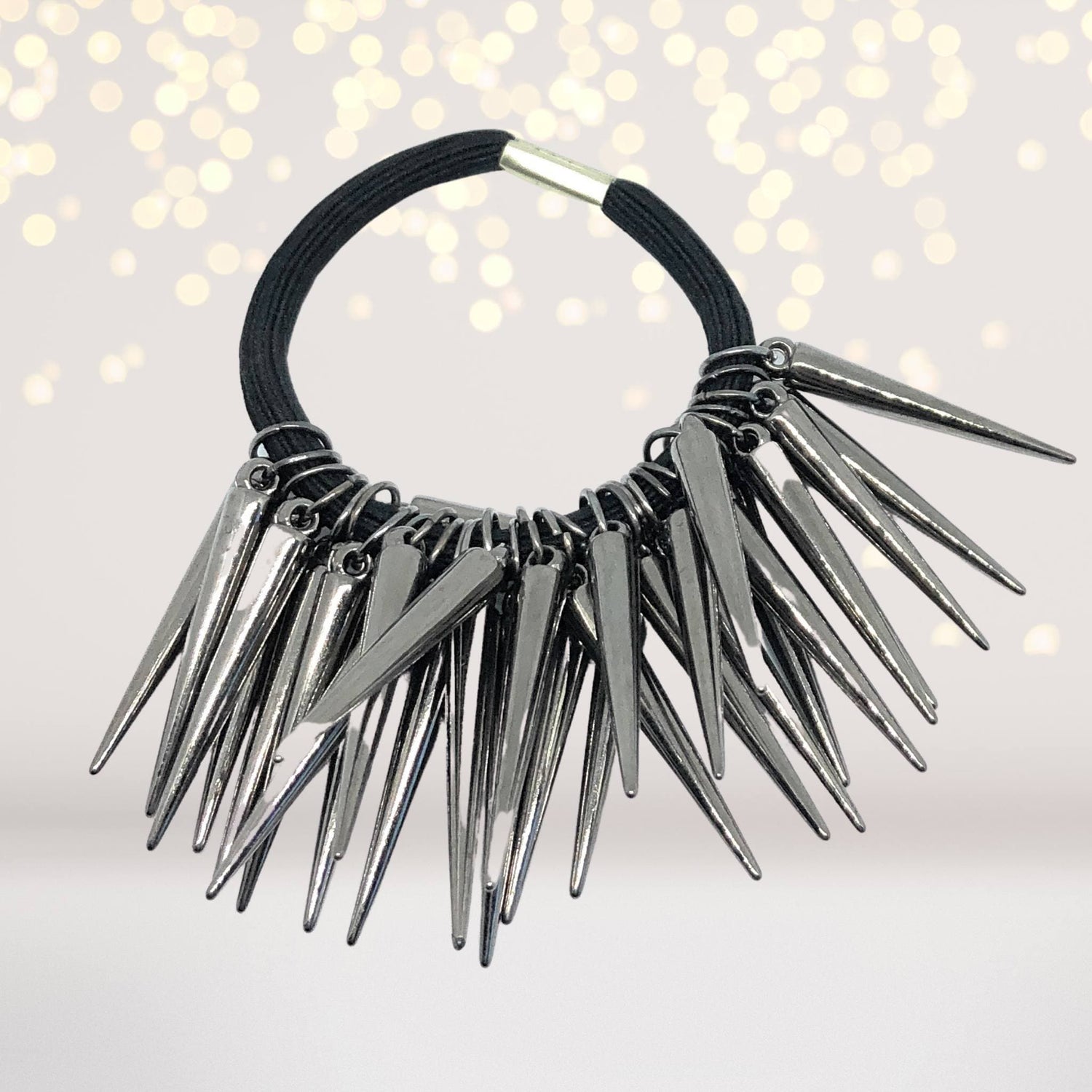 Get ready to rock your look with confidence and flair. Add our Spike Ponytail Holder to your collection today and let your hair do the talking! 🤘🖤