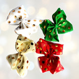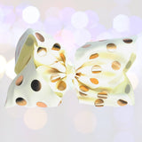 Celebrate every occasion with flair with our Girls 7-inch Metallic Gold Polka Dot Grosgrain Hair Bow on Alligator Clip. These large and luxurious bows embody joy and fashion-forward styling for any young girl who loves to shine.