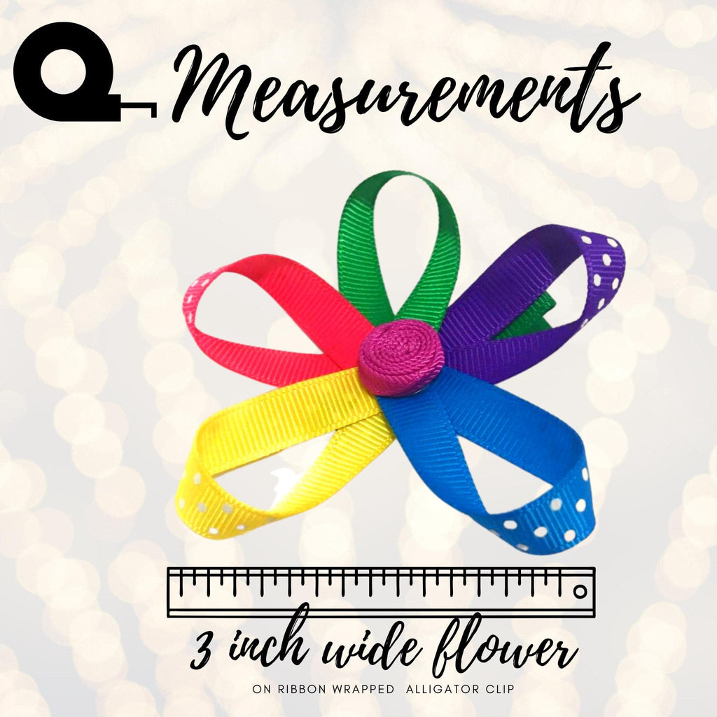 Girls Rainbow Ribbon Flower Hair Clip, Rainbow Flower Clip