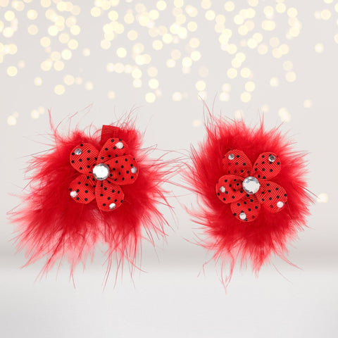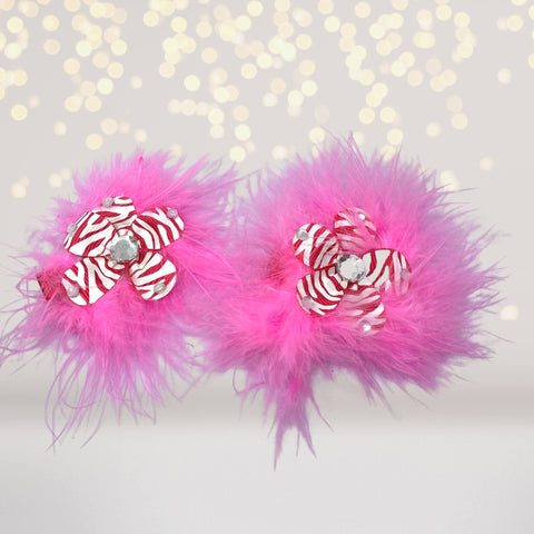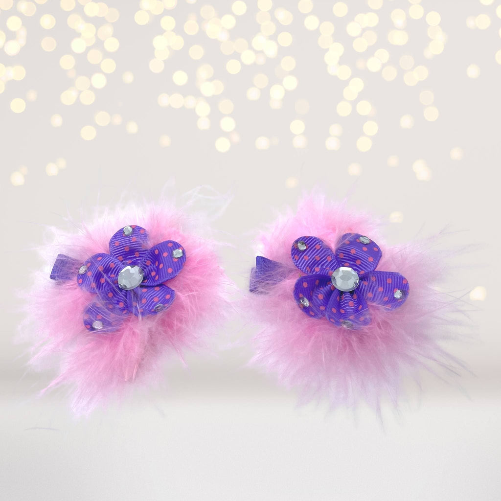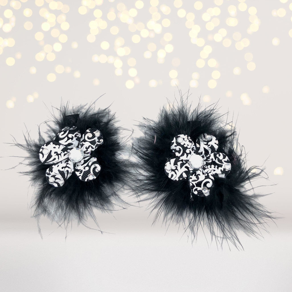 Whether you're attending a party, heading to school, or simply looking to add a playful twist to your everyday look, the Sweet and Sassy Marabou Flower Hair Clips are your go-to accessory. Their whimsical design and sparkling details make them a hit for any event. 🎉🌈