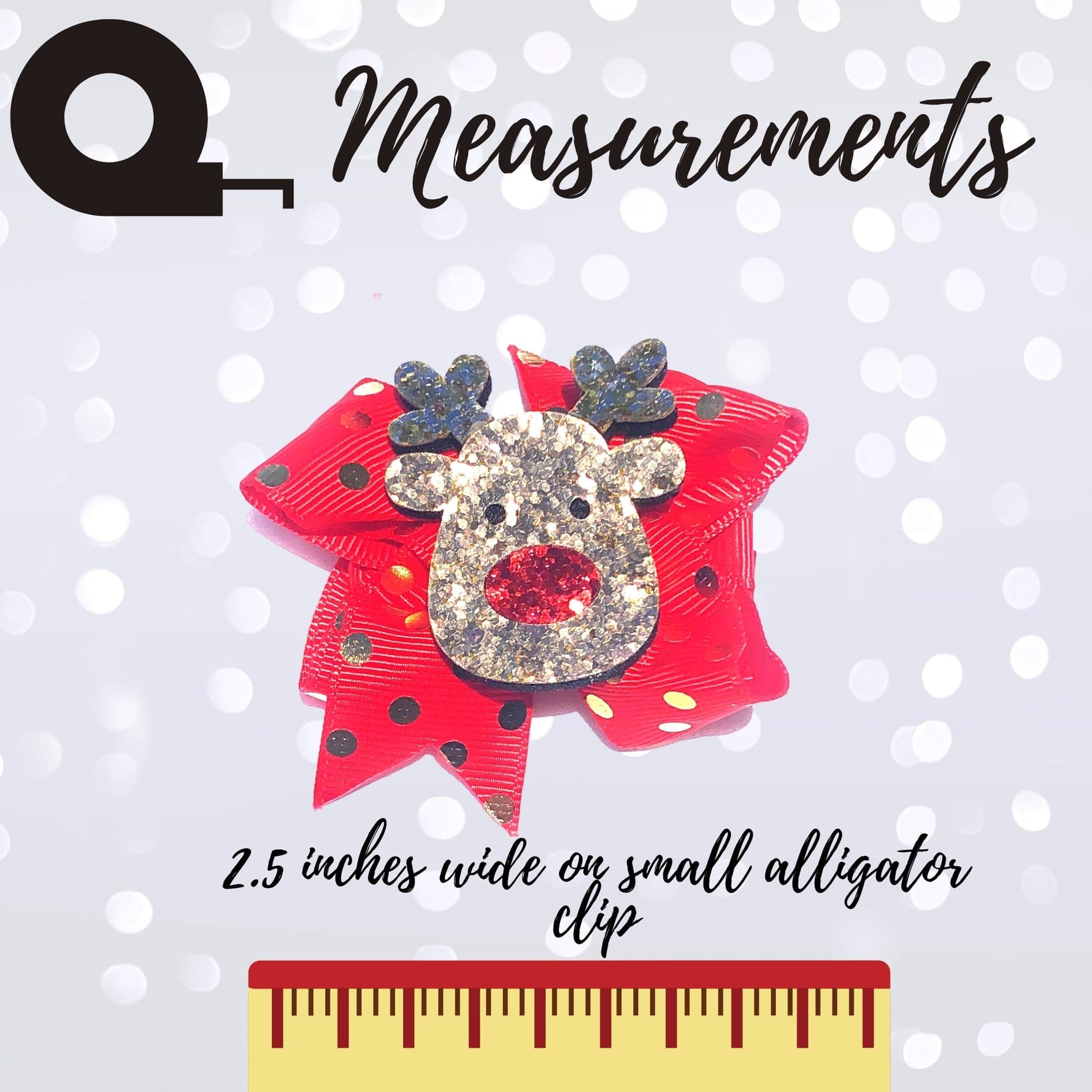 Girls 2.5" Glitter Rudolph the Red Nose Reindeer and Santa Claus Christmas Hair Bow Clips