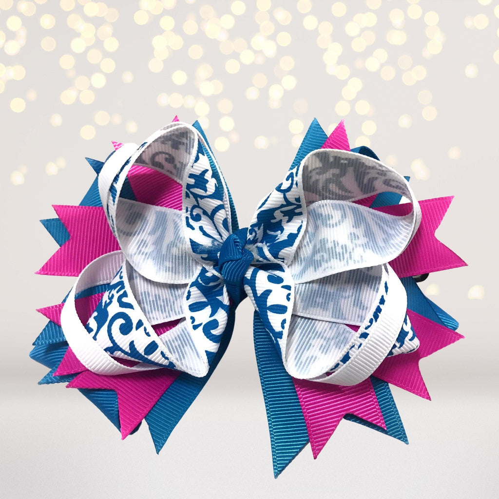 Girls Layered Boutique Hair Bows, 5 inch Fun Print Bows