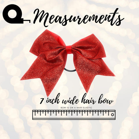 Unwrap the joy of the festive season with the Girls 7-inch Stiff Glitter Cheer Hair Bow Ponytail Holder, the perfect accessory to jingle all the way through your Christmas holidays and cheerleading events!