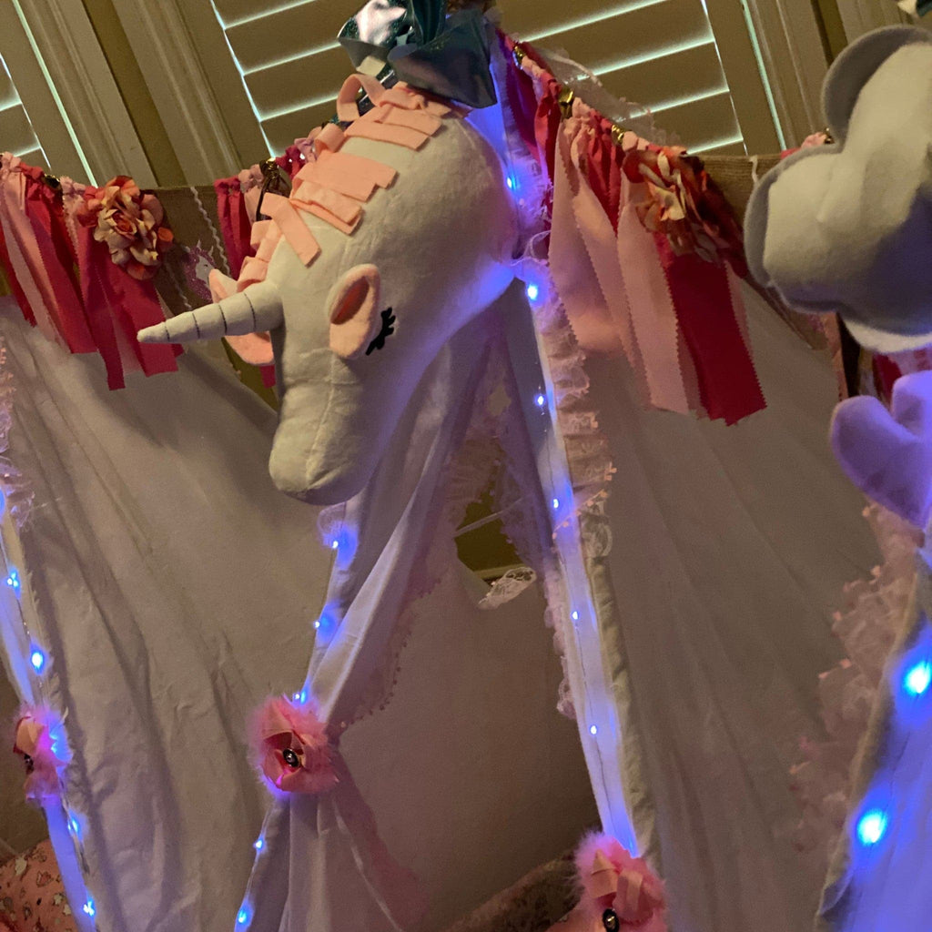 - 1 unicorn head to hang from your teepee tent or A-frame tent