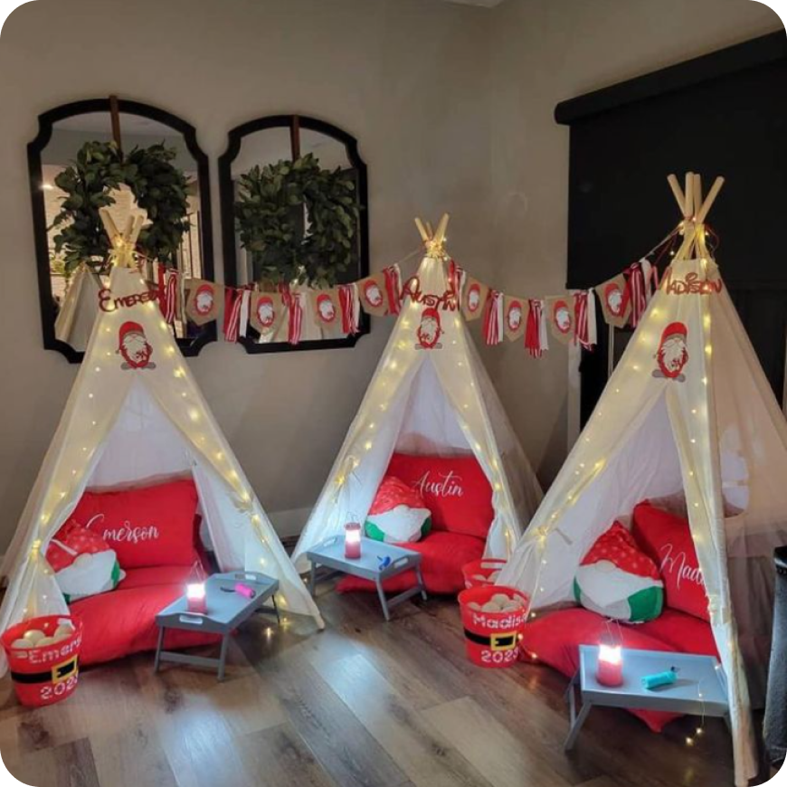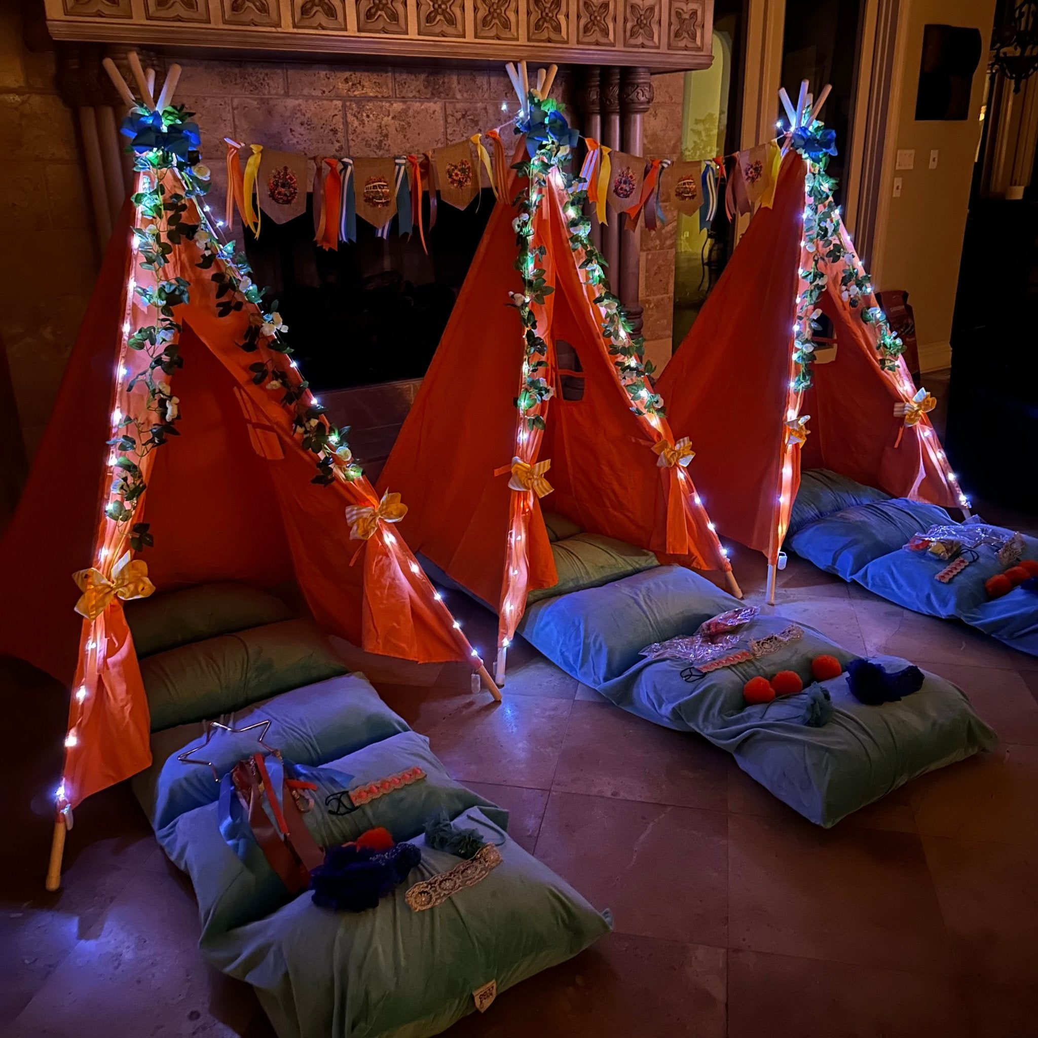 Shop the best sleepover tent, decorations birthday, party favors, party gifts, and Party Supplies. We offer custom made personalized gifts, decorations, party favors and slumber party planning to create your next magical teepees party birthday. Contact us for custom and personalized options.