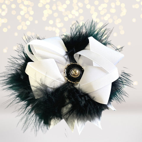 Add a touch of elegance to your child's wardrobe with our Marabou Feather Flower Shaped Hair Bow — where style meets whimsy!
