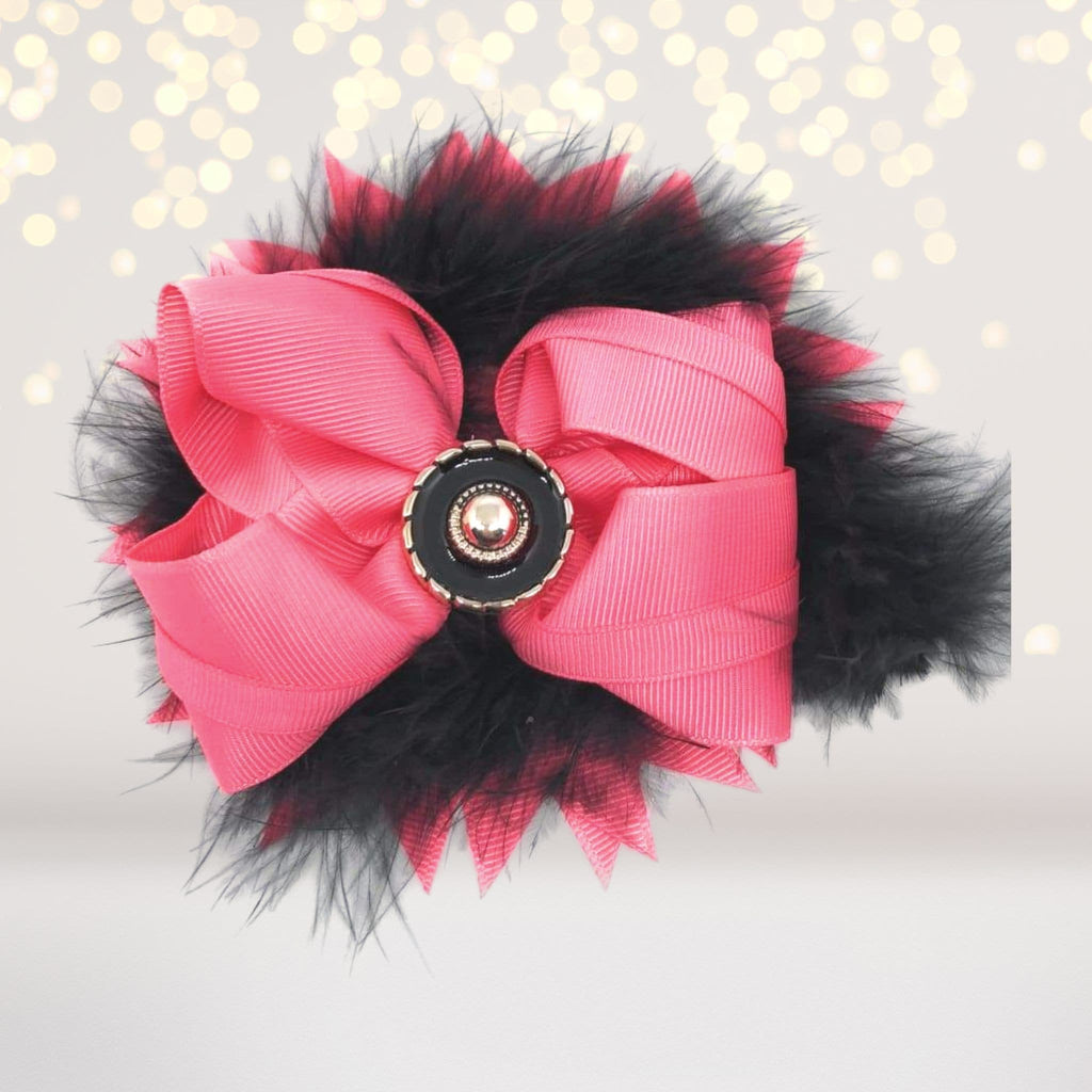 Colorful Options: Our Marabou Feather Flower Shaped Hair Bow is available in a variety of colors: pink, red, purple, turquoise, black and white, and pink and black. Choose your favorite or collect them all for a spectrum of stylish options! 🌈🎨