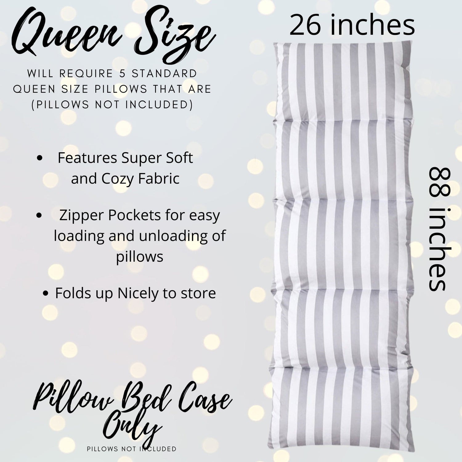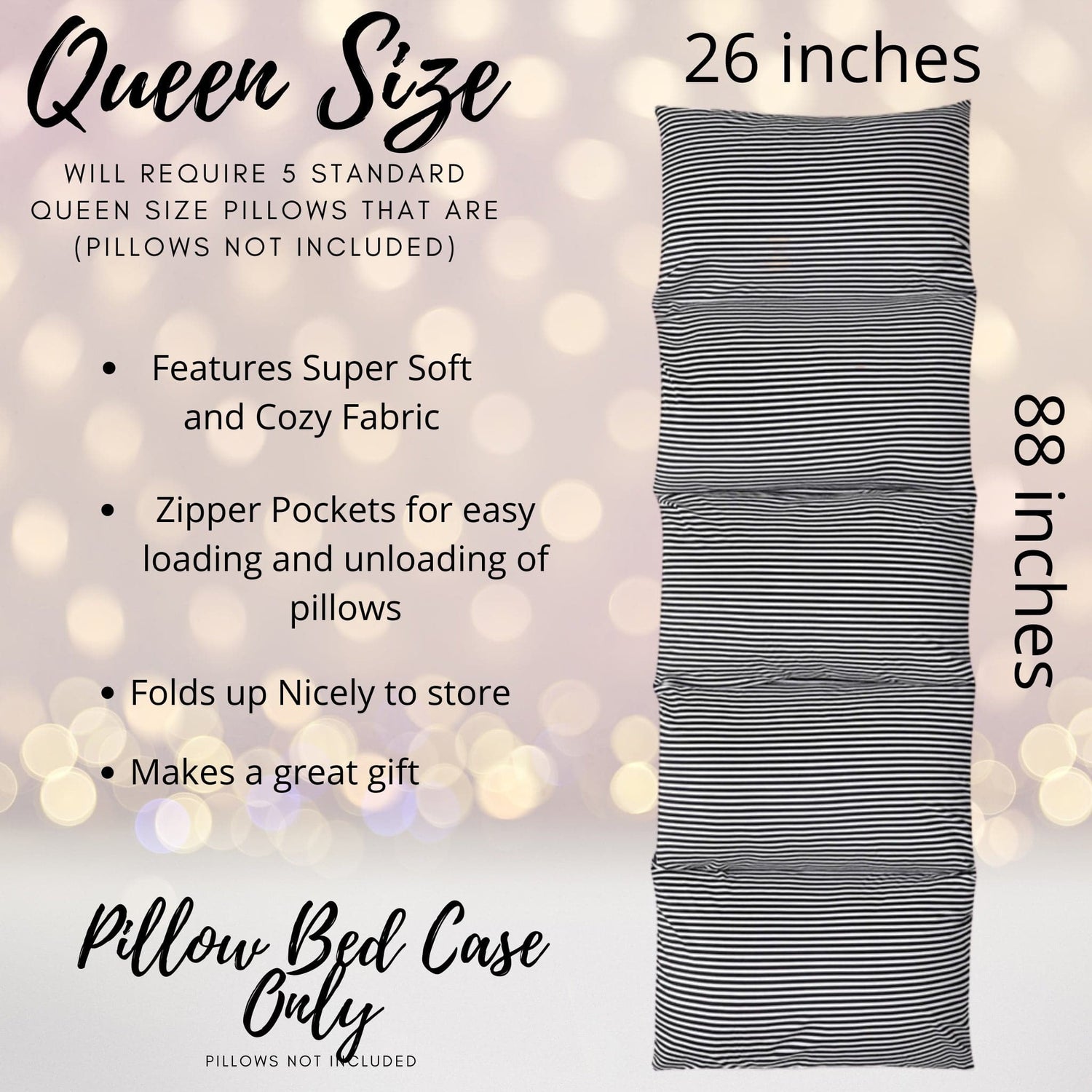 - Easy to Use & Maintain: This large pillow case cover fits 5 queen size pillows (not included) in zippered pockets for easy setup and cleaning. Measures 88 by 26 inches.