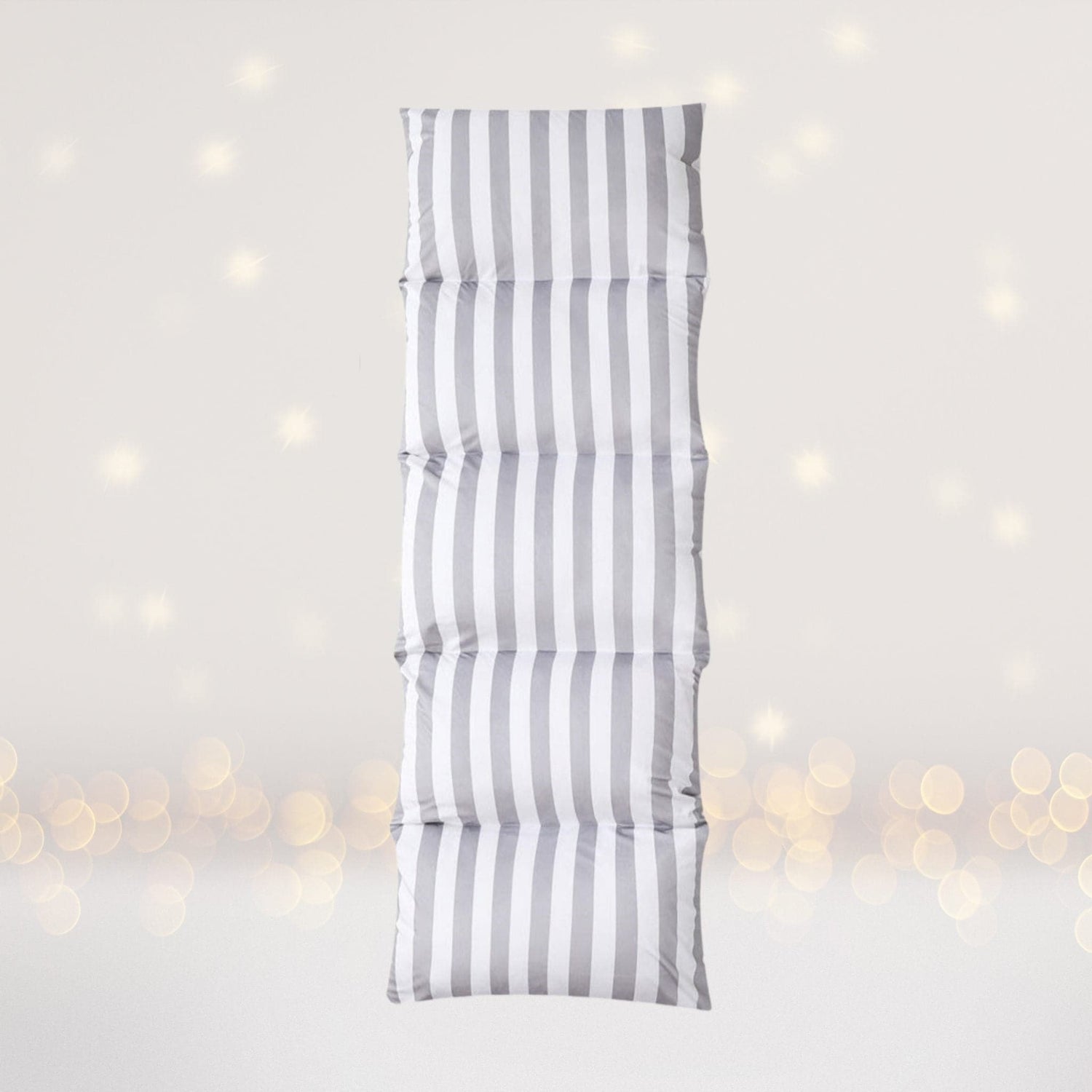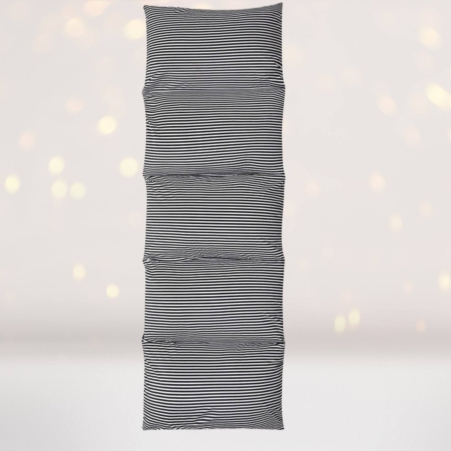Welcome to the world of comfort and style with our Kids Grey and White Stripe Pillow Bed Slipcover, Floor Lounger. This versatile piece can transform into a cozy bed for sleepovers, a comfortable nap mat, or a fun seating option for playtime. It's perfect for a child's room, a visit to grandma's house, or as an essential part of your 'glamping' party decor. 🛏️🎉💤
