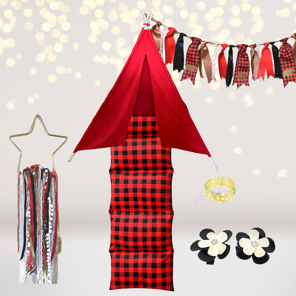 Red and Black Buffalo Plaid Teepee Tent Play Set, Buffalo Plaid Holiday Decor